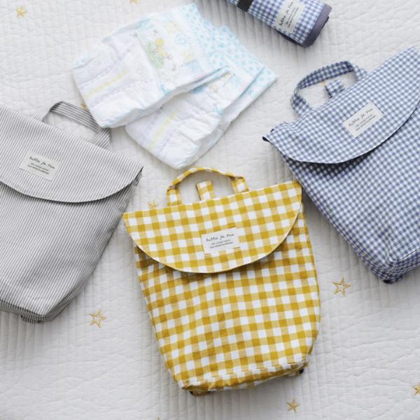 またセットとして紙おむつの持ち歩きにちょうどいいポーチを。このポーチ、実は紐をつけることでママが持つ斜めがけバッグとして、さらにお子様のリュックとしても使えるんです。