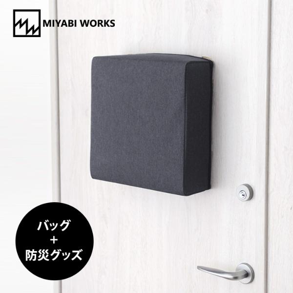 【ご紹介したアイテム】 磁石でドアにくっつけておける防災バッグ。こちらは中に防災グッズが詰まったセットです。常に玄関に置いておけるスマート形状で、玄関ドアに馴染む色とカタチが◎。