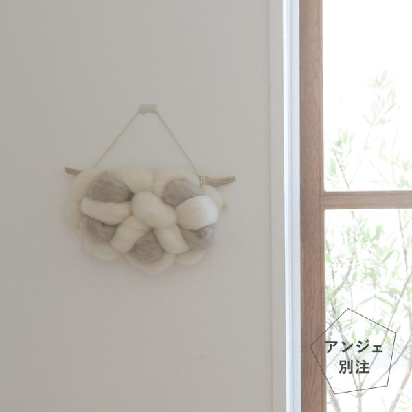 届いた羊毛タペストリーは、こんなふうに手でモフモフと形を整えます。