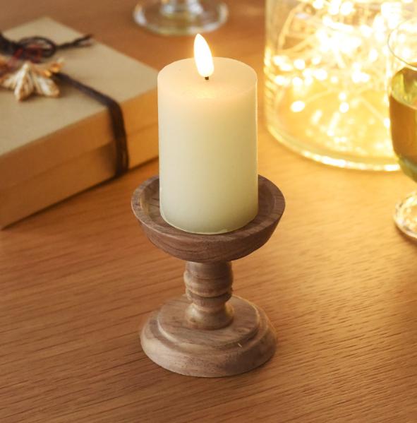 秋冬インテリアやクリスマスの飾りにも人気のキャンドルを、ちょっと格上げインテリアに変えてくれるキャンドルスタンド。優しい木の風合いは、カジュアルなお部屋にも馴染みます。