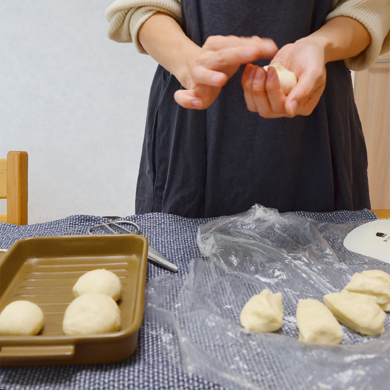 今回、おうちパンマスターで滋賀県にて“KUPPI ちいさなパン教室”を運営されている野口先生に、本の内容に沿って基本のプレーン生地で作る丸パンの作り方を教えてもらいました。
