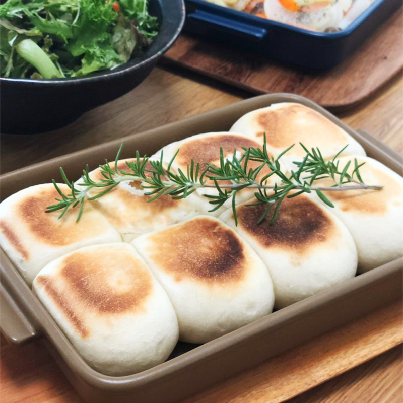 陶器製のダッチオーブンをイメージして作られた、オーブンや直火、魚焼きグリルでも使える「グリラー」は、実はパン作りも得意。レシピブック「グリラーでおいしいおうちパン」には、パン作り初心者さんでも挑戦しやすいレシピが、全34種類掲載されています。