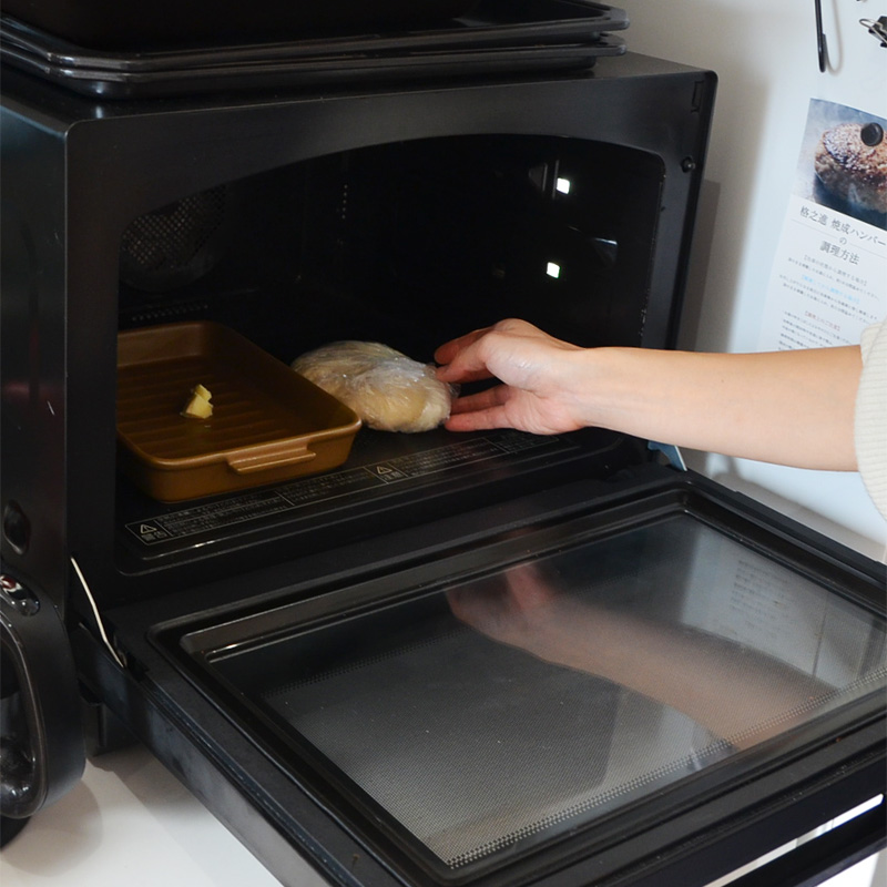 蓋をせずレンジ(200w、解凍モード)で40秒温めてから、蓋をして15分置いて仕上げ発酵させます。
