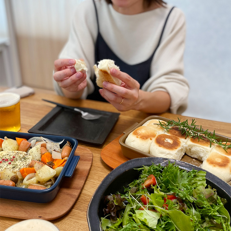 テーブルセッティングなどですぐ食べられない時も、蓋をして置いておけば少し時間がたってもあったか&ふわふわをキープしていました。