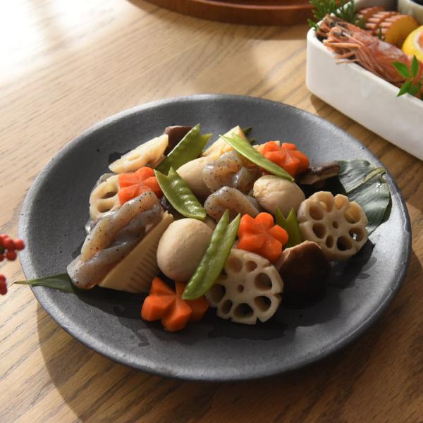 約1200年の歴史を持つ信楽焼から、現代の暮らしにフィットする黒い器、KUROプレート255mmです。程よく深さもあるので、煮しめなど少し汁気のあるものにも。