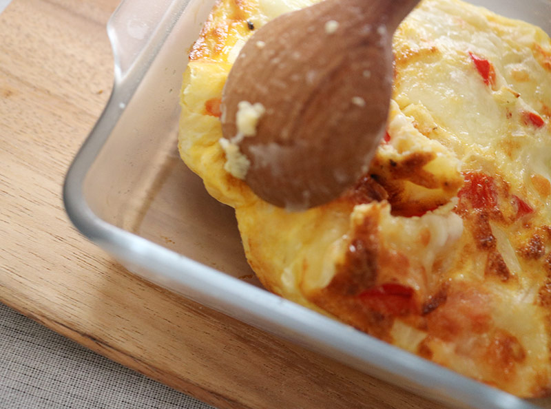 カットした具材と卵を混ぜてトースターで焼けば、忙しい朝も手間いらず。