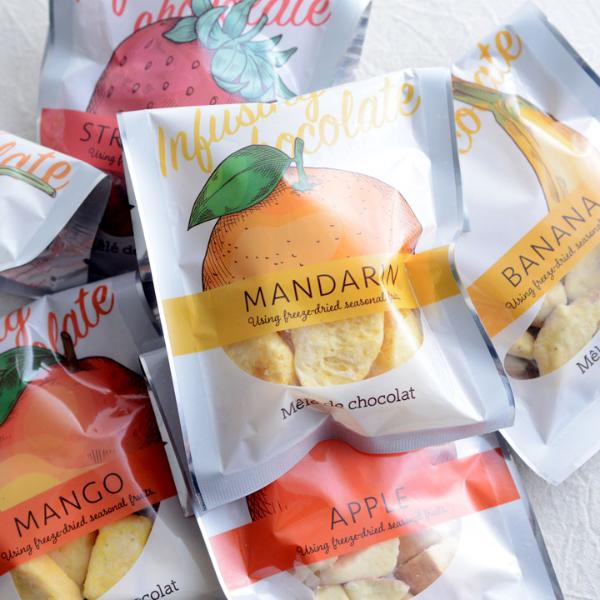 フリーズドライした果実に独自製法でホワイトチョコを染み込ませたメレ・ド・ショコラのチョコレートです。