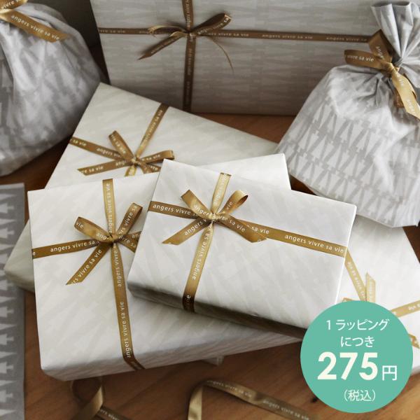 アンジェオリジナル有料ラッピングは、自然豊かな北欧の森を連想させるような、優しいライトグレーをベースにした木の模様のデザイン。出産祝いなどにも贈りやすいテイストに仕上げました。