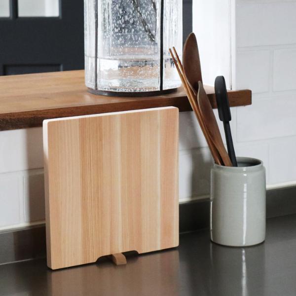 置くところを選ばない!自立する「ひのき スタンド付きまな板」