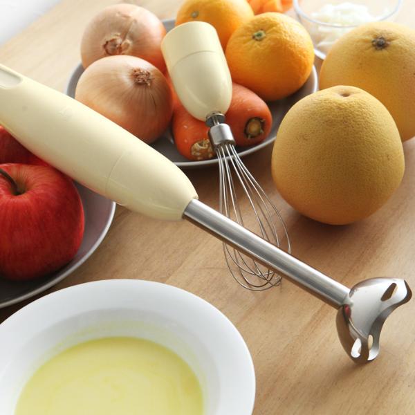 スティックブレンダーを使えば、お鍋で柔らかく煮込んだ野菜をクリーミーなポタージュスープが。また手間のかかるハンバーグのみじんきりの玉ねぎを作るところからこちらで泣かずに素早く。さらにデザート作りにも活躍してくれるんです。