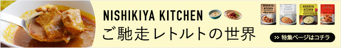 NISHIKIYA KITCHENとは、素材とレシピに拘って、世界中のおいしい!を集めてパウチにしたのが、こちらの「ごちそうレトルト」食品。すべての食品が化学調味料、着色料、香料不使用。