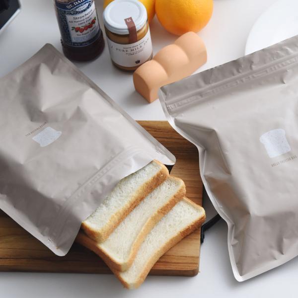 食パンの冷凍保存をもっと美味しくするための専用袋。ニオイ移りや乾燥を防いでくれる、アルミを挟んだ3層構造です。こちらは半斤サイズ2枚セットです。