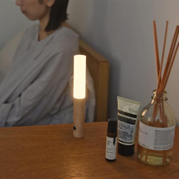 天然木とすりガラス風の素材で作られたオブジェのようなセンサーライト。人感センサーで足元を照らしてくれるので、お手洗いや授乳も安心です。USB充電式で気軽に設置可能。センサー点灯・常時点灯の2つのモード。