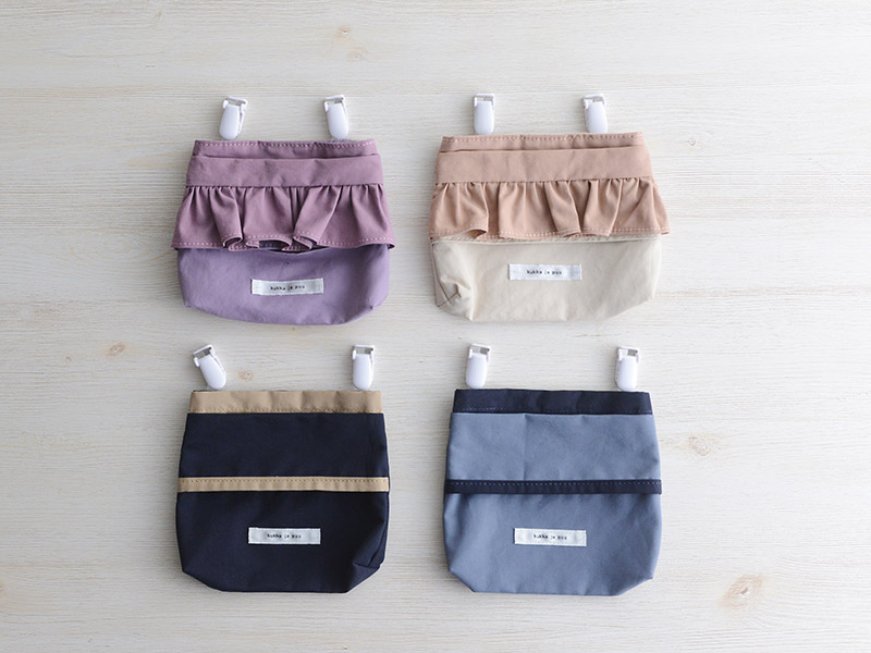 ハンカチ、ティッシュに加え、マスクの予備も収納できる移動ポケット。片手で開け閉めできるから小さなお子様にも◎。普段のお洋服に合わせやすい北欧カラーがポイントです。