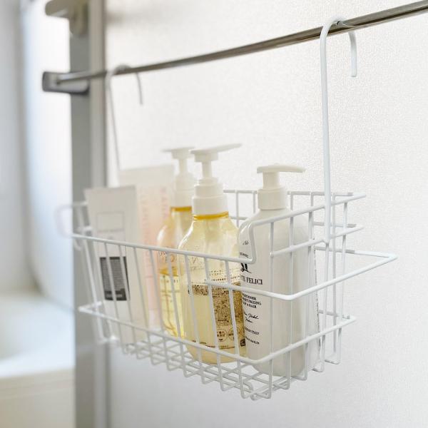 新潟の燕三条で作られたお風呂用吊り下げバスケット。シャンプーやコンディショナーのボトルや洗顔フォーム、お子様のおもちゃなどまとめて浮かせて収納できます。