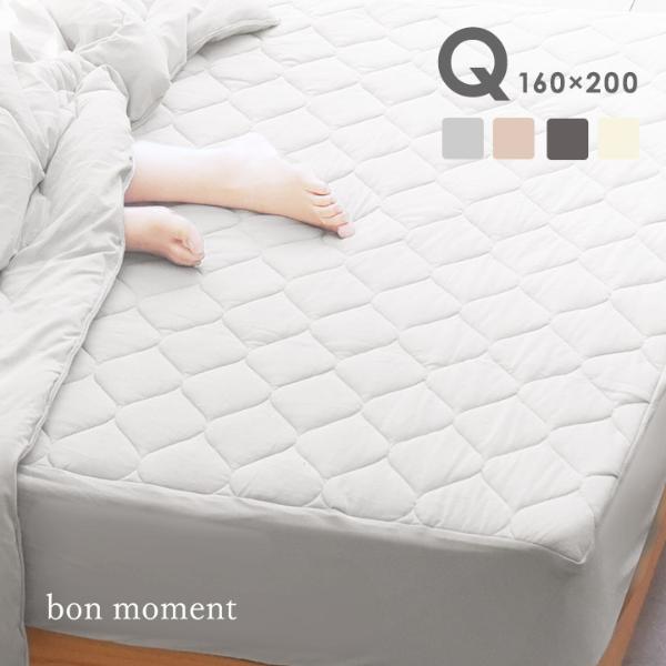 ・bon moment ドライコットン ボックスシーツ型 敷きパッド クイーン 綿100%/ボンモマン