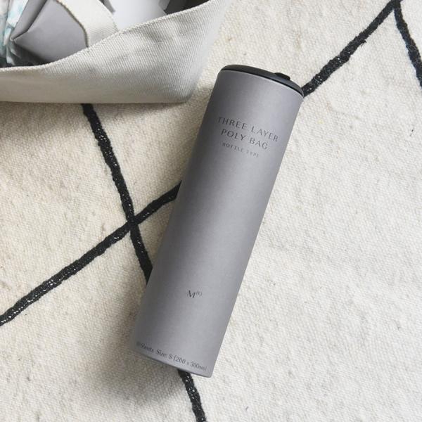 置きっぱなしにしててもインテリアに溶け込んでくれる、ということで「ボトル型THREE LAYER POLY BAG」をしばらくは使い続けてみようかなと考えています。