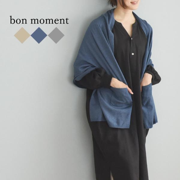 ⇒bon moment ポケット付 体に馴染むニットストール/ボンモマン