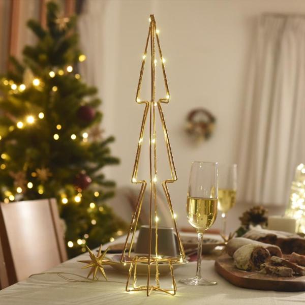 間接照明のようなインテリアの、LEDライトつきのワイヤーツリーです。スリム&シンプルデザインで飾りやすく、ゴールドのワイヤーツリーはそのままでも絵になります。