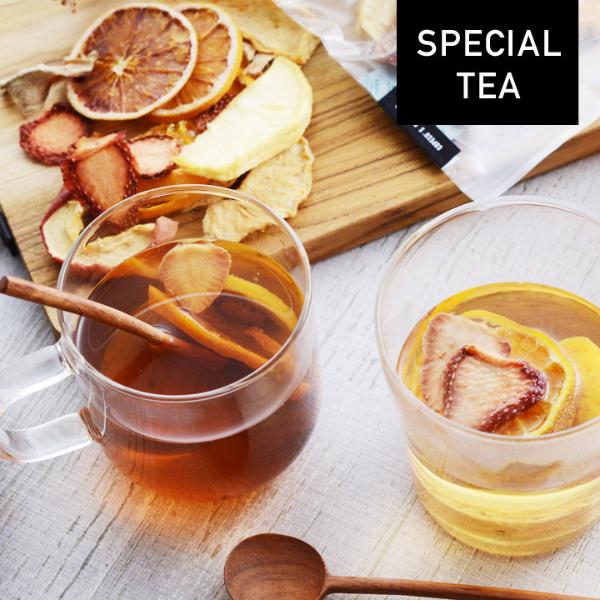 砂糖・香料・着色料を一切使用せず、原材料は茶葉と国産ドライフルーツのみのシンプルなフルーツティー。週末のプチ贅沢なティータイムや、お配り用のプチギフトにも。