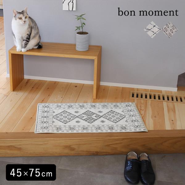 民族テイストのやさしいデザインを、毛足の短いマットにプリントしたbon moment(ボンモマン)のマット。毛羽落ちしにくく、お掃除しやすく、洗いやすくて、滑りにくいという、4つの扱いやすさと気持ちよさを備えたマットです。