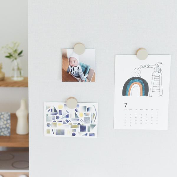 壁に穴を開けずにピタッとくっつけられて、紙をスリットに挟むだけ。入れ替えもスッと簡単にできます。