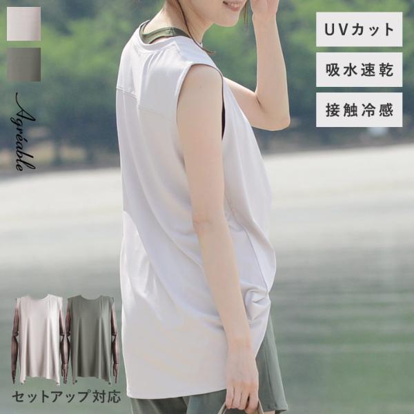 ⇒ラッシュガード タンクトップ ノースリーブプルオーバー UVカット 吸水速乾 接触冷感/Agreable アグレアーブル