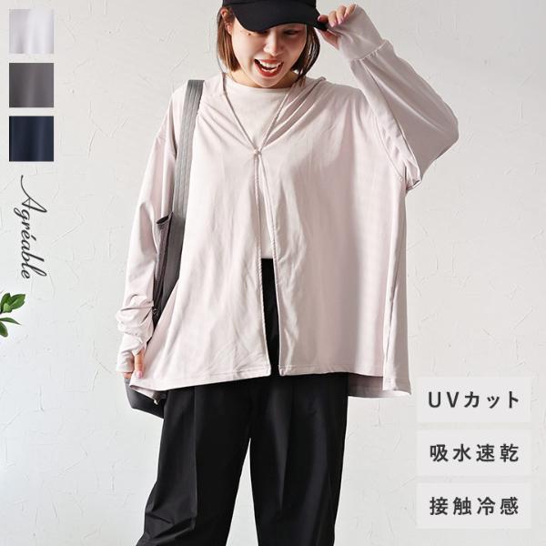 ⇒ラッシュガード フード付きケープ 羽織り カーデイガン UVカット 吸水速乾 接触冷感/Agreable アグレアーブル
