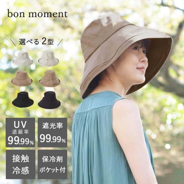 ⇒bon moment リネン混 つば広遮光ハット 保冷剤ポケット付/ボンモマン【送料無料】