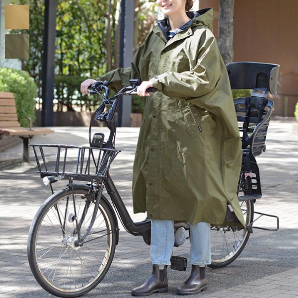 雨の日でも快適に自転車に乗れるレインポンチョ。ロング丈で足元が濡れにくく、風でめくれにくいのも特徴。男女兼用でゆとりがあり、リュックの上からの着用もできます。