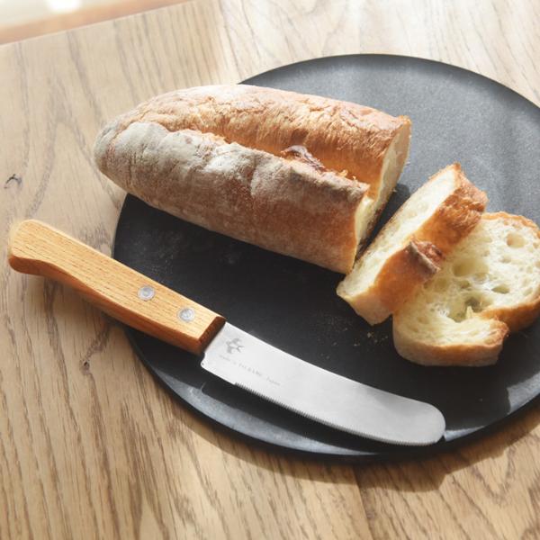 新潟県燕市で作られた、つばめのマルチバターナイフ。薄刃で切れ味は抜群、ハンドルは手に馴染むケヤキの天然木を使用。食卓でちょっと切りたい、そんなシーンに便利です。