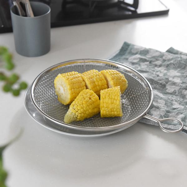 ボウルとセットで使うザルとは違い、お皿とセットで使うことができる浅いザルです。