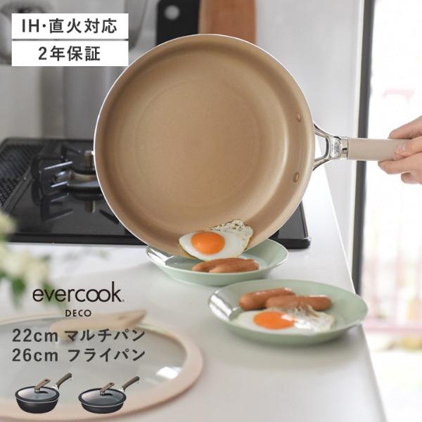 ⇒22cmマルチパン・26cmフライパン ガラス蓋付き ガス火対応 IH対応 2年保証付き/evercook DECO エバークック デコ【送料無料】