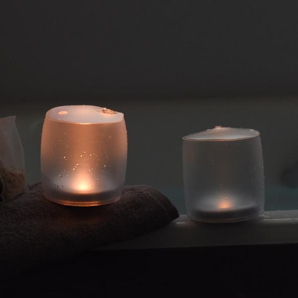 空気で膨らませて、水濡れしても大丈夫なLEDキャンドルです。点灯モードにキャンドル風のゆらぎがあり、バスタブに浮かべてバスキャンドルとして使ったり、屋内外でのリラックス時間を演出してくれます。