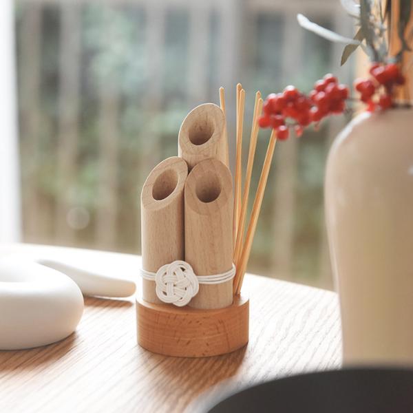 竹部分と台座部分には木肌が密な2色のブナ材を使用。仕上げのオイルは有害な化学物質を含まない自然塗料なので、お子様がいるご家庭でも安全に飾れるようになっているんだそう。