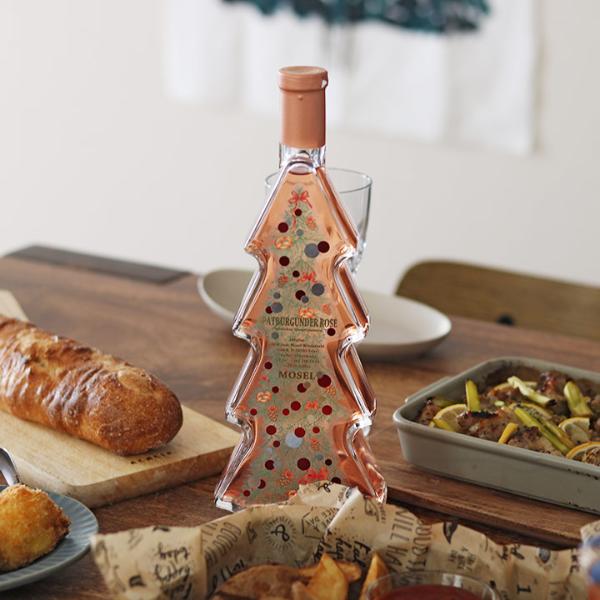 ドイツ最古のワイン産地、モーゼル地方産のロゼワインをクリスマスツリー型のボトルに入れてお届け。飾っても楽しめるボトルは、プレゼントは勿論、パーティーのお手土産にも◎。