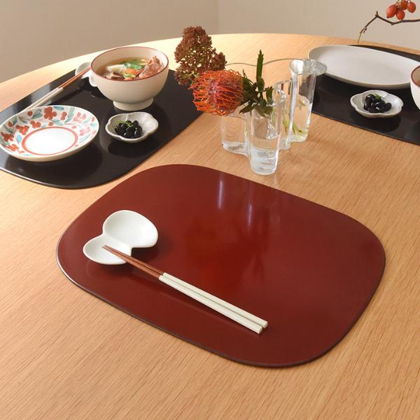 ハレの日にぴったりな、赤と黒2色の漆塗り風のトレイです。