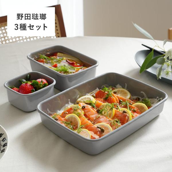 ⇒+Gray プラスグレイ 保存容器 3種セット (スクウェアS レクタングル深型M レクタングル浅型M)/野田琺瑯【本店送料無料】
