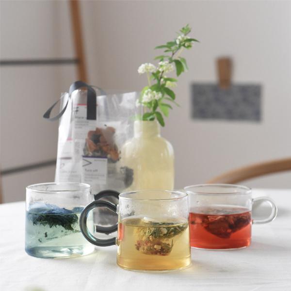 6つのブレンドは、眠る前、勉強の時などおすすめのシーンに合わせて選べます。レッドやブルーなどのお茶の美しいカラーで目からも癒し効果抜群!