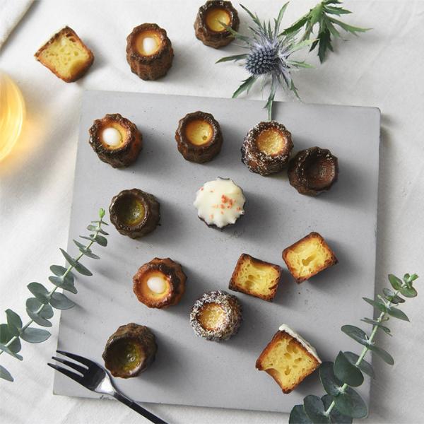 ちょこんと小さなカヌレを詰めたアソートBOX。こちらは大阪のクリエイティブ集団「graf(グラフ)」の実店舗にある「graf kitchen」で大人気のもの。