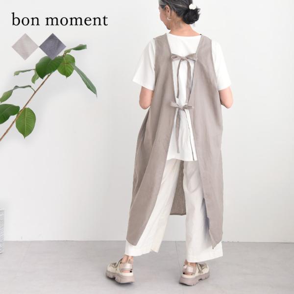 bon moment コットンリネン 後ろリボンエプロン/ボンモマン