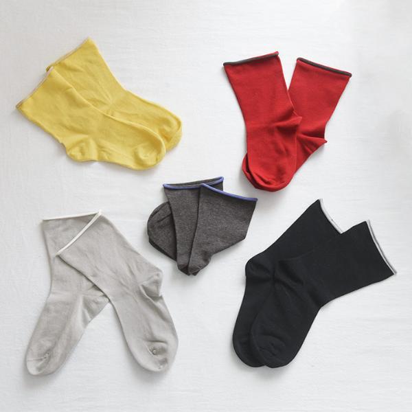 履き口がゆったりとしたノンストレスソックス。奈良県の工場で1足ずつ丁寧に作られた、滑らかな生地とバイカラーなデザインが遊び心のある靴下です。