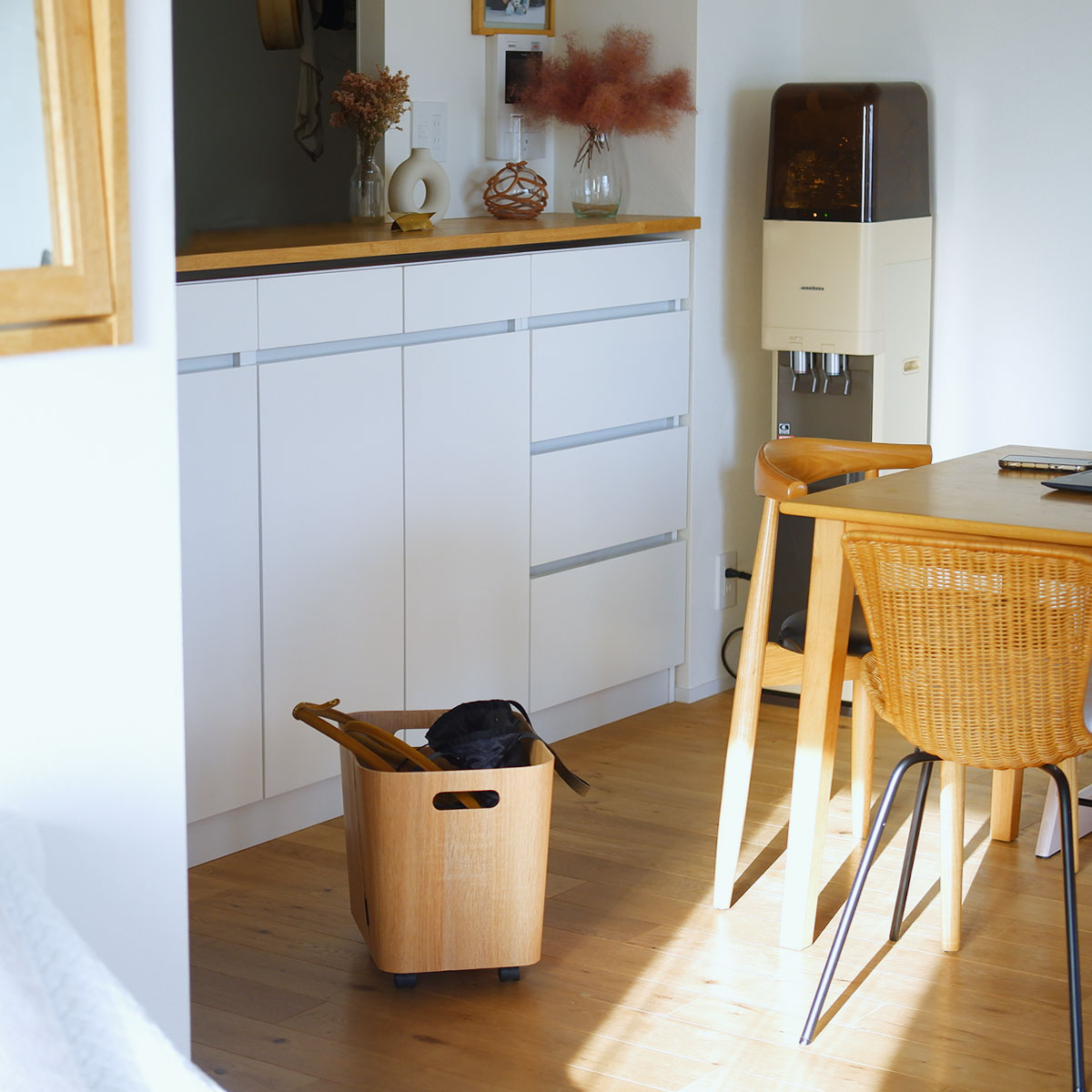 後ろで紐を結ぶ必要がないのもラク。エプロン習慣が続くポイントです。