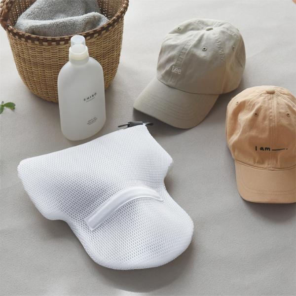 外側のクッション性のあるメッシュと内側の細かいメッシュが帽子を優しく守り、色褪せや型崩れを軽減。帽子をケアしながら、洗濯機でガシガシ丸洗いできます。