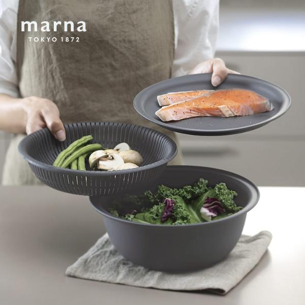 蓋として使えるトレーがついた、marnaのザルボウルセット。それぞれ深さが違うので、重ねて使えて下ごしらえも楽ちん。電子レンジも使えて料理の幅が広がるアイテムです。