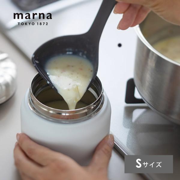 ハマグリ形状で鍋肌にしっかりフィット、残さずすくい取ることができて、角があるから注ぎやすいmarnaのお玉・Sサイズ。側面についたカレールーもしっかりキャッチできます。