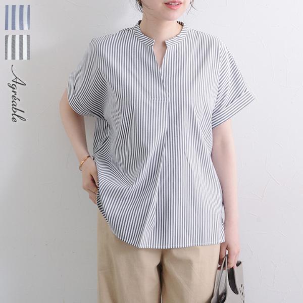 サラっと快適 シワになりにくい ストライプブラウス/Agreable アグレアーブル【送料無料】