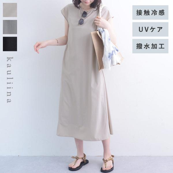 どんな天気も快適に 撥水 ナイロン 薄手で軽い着心地のサックワンピース UVケア 接触冷感 タテヨコストレッチ /kauliina カウリーナ