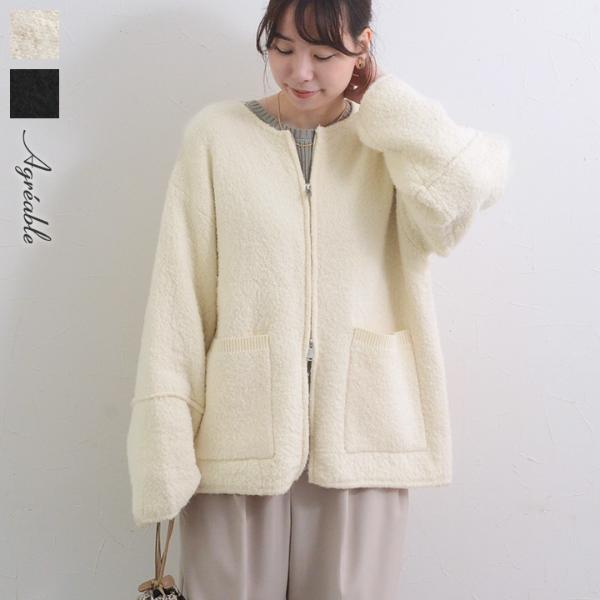 アウター代わりになる ブークレニット ジップブルゾン/Agreable アグレアーブル【送料無料】