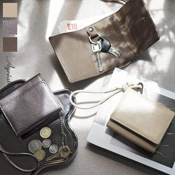 ⇒鍵もお金もカードも収納できる 本革 キーケース付き 三つ折り財布/Agreable アグレアーブル